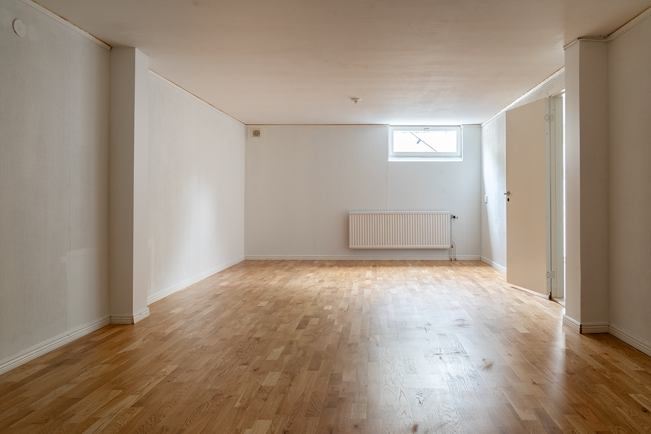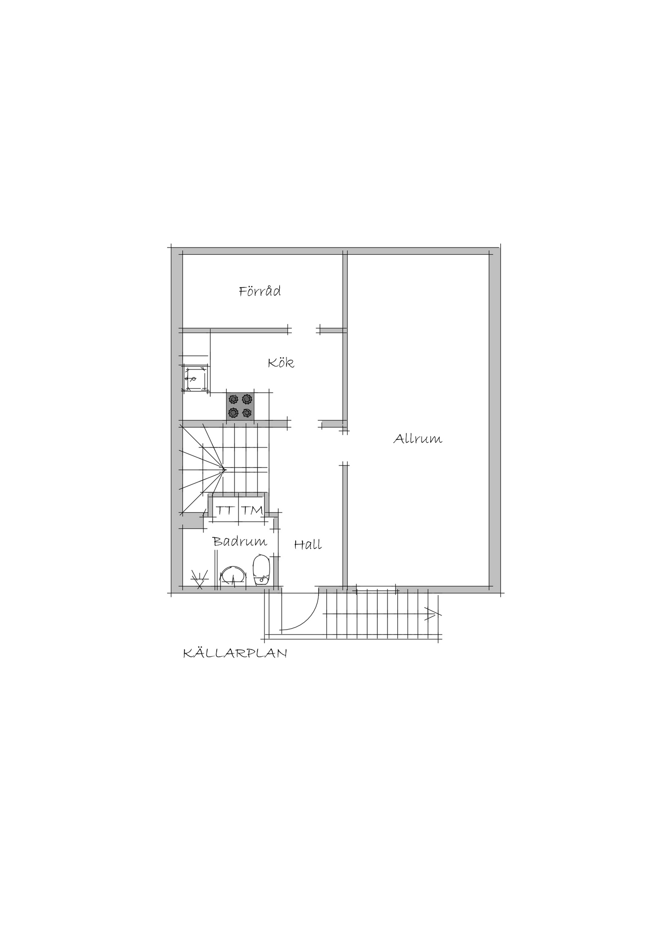 Allrum - Ett större utrymme som kan inredas på många olika sätt. Om källarplanet ska fungera som en självständig bostad så kan man inreda med matplats, soffa och säng. Om annat så är det ett bra umgängesrum som kan inredas därefter.
