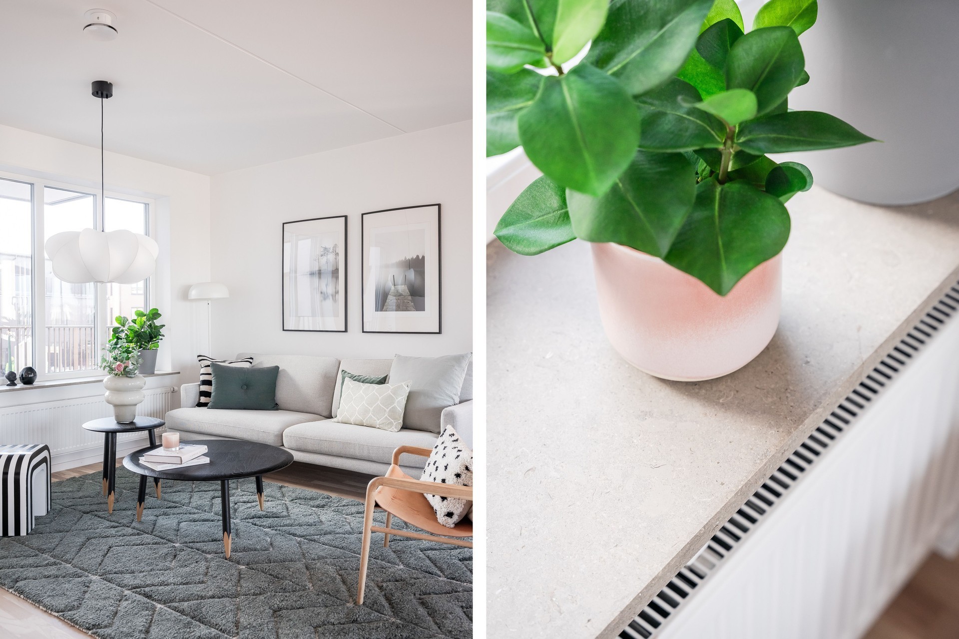 Planlösningen disponeras idag som 3 rok men kan enkelt återställas till 4 rok för den som önskar fler rum (se alternativ planlösning). Det trevliga ljusinsläppet från fönster i tre väderstreck skapar ett hem fyllt av rymd och harmoni. Köket från Vedum med vitvaror från Siemens. Dubbla helkaklade badrum med inredning från INR, utrustat med tvättmaskin och torktumlare. Förvaring i skjutdörrsgarderob med inredning från Elfa. Detaljer som vitlaserade ekgolv, integrerade vitvaror och genomgående hög standard ger bostaden en exklusiv känsla.