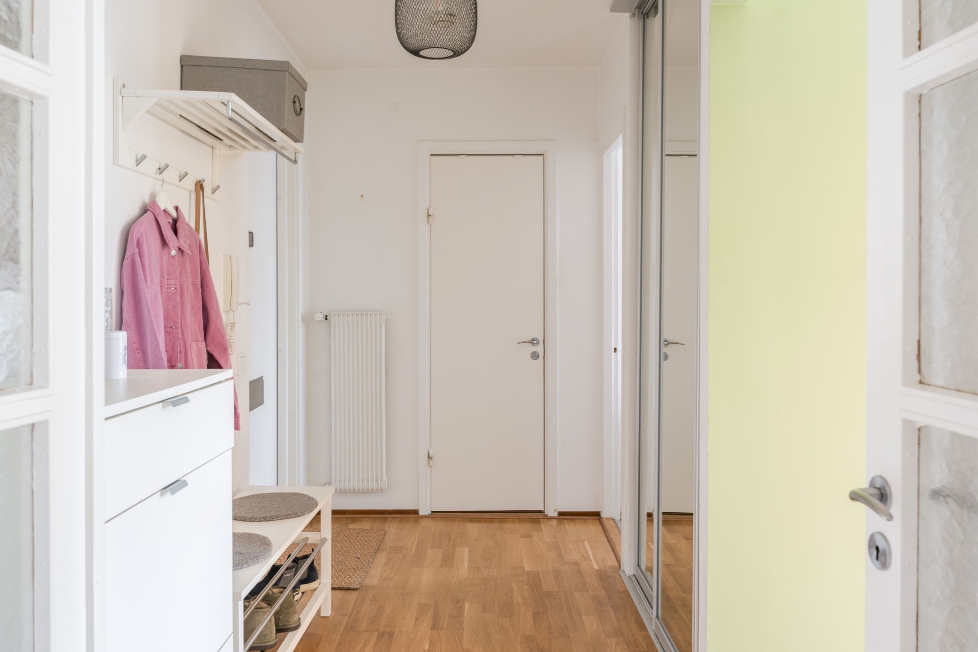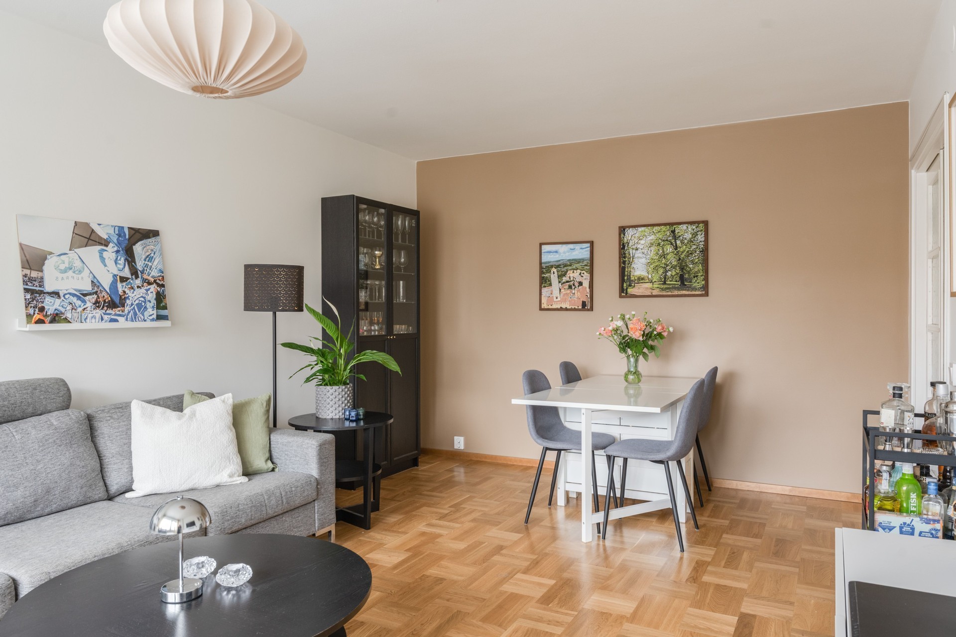 En välplanerad bostad med genomtänkt planlösning, fina materialval och ett härligt ljusinsläpp som tillsammans skapar en inbjudande och hemtrevlig känsla. Här samsas klassiska detaljer med moderna inslag på ett smakfullt sätt, där bland annat vackra golv, ljusa färgval och eleganta pardörrar ger bostaden karaktär. Lägenheten erbjuder även goda förvaringsmöjligheter och ett fräscht, helkaklat badrum. Allt sammantaget ett hem som är lätt att trivas i och enkelt att göra till sitt eget. Från vardagsrummet nås balkongen i soligt sydvästläge. Köket är välplanerat med bra arbetsytor och en naturlig plats för matbord.