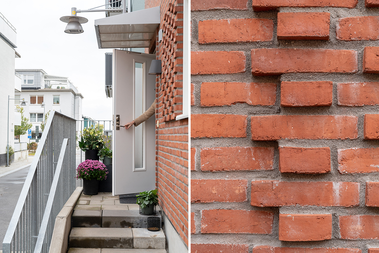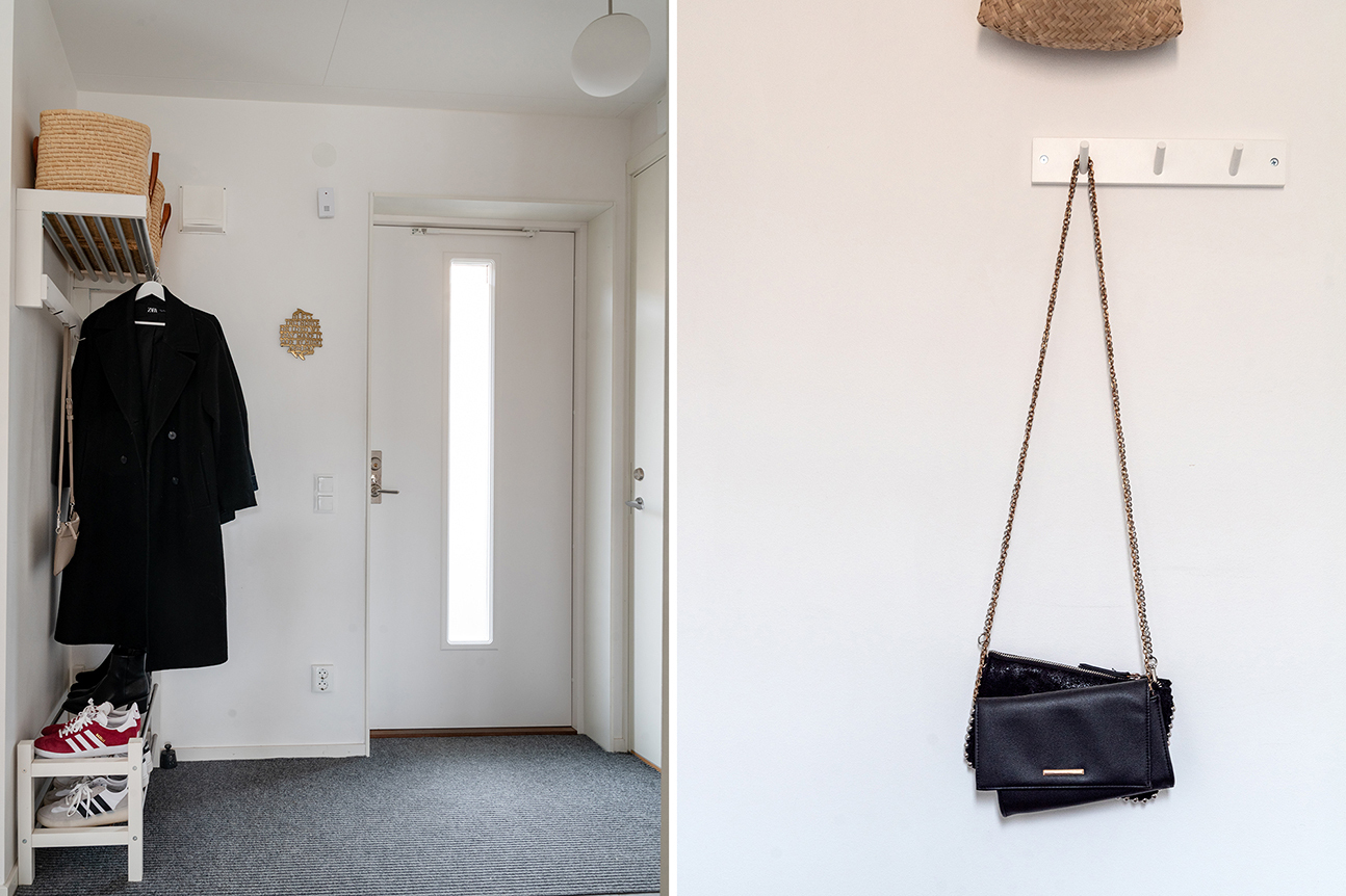 HALL - Via den egna entrén välkomnas man av en ljus hall med praktisk klinker som underlättar vardagen. Vid entrén bjuds man på en vacker siktlinje västerut, där havet skymtar i bakgrunden. Här finns gott om plats för avhängning samt förvaring i garderob.