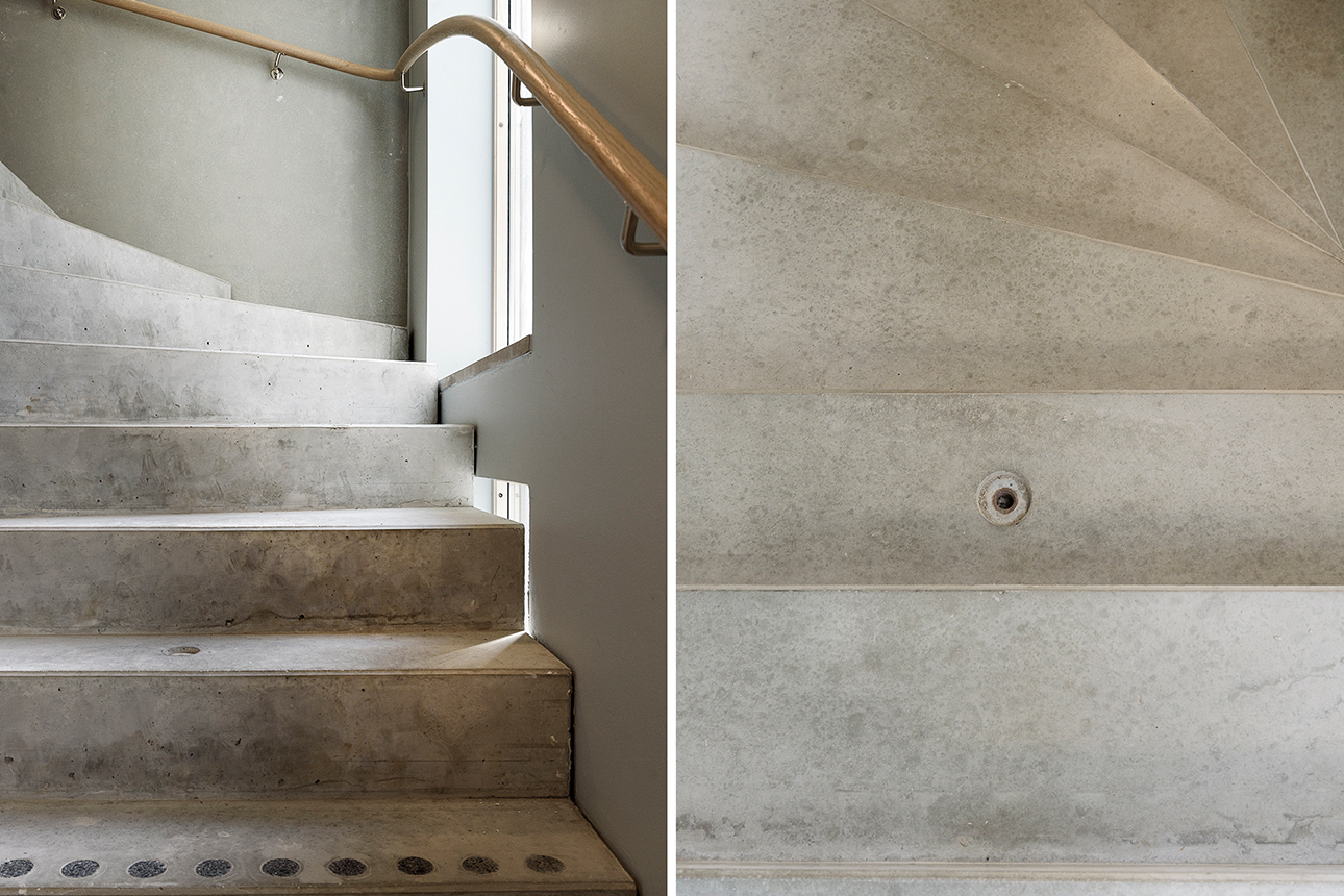 HALL - Ljus hall tack vare fönstret bredvid ytterdörren. Direkt till höger finns plats för avhängning av ytterkläder. Här möts man av en trevlig siktlinje genom hallen, vidare in i vardagsrummet och ut genom de stora fönsterna. I hallen finns gott om förvaring i skjutdörrsgarderob. Väggarna består av rå betong med vitmålade partier och golvet är i askparkett.