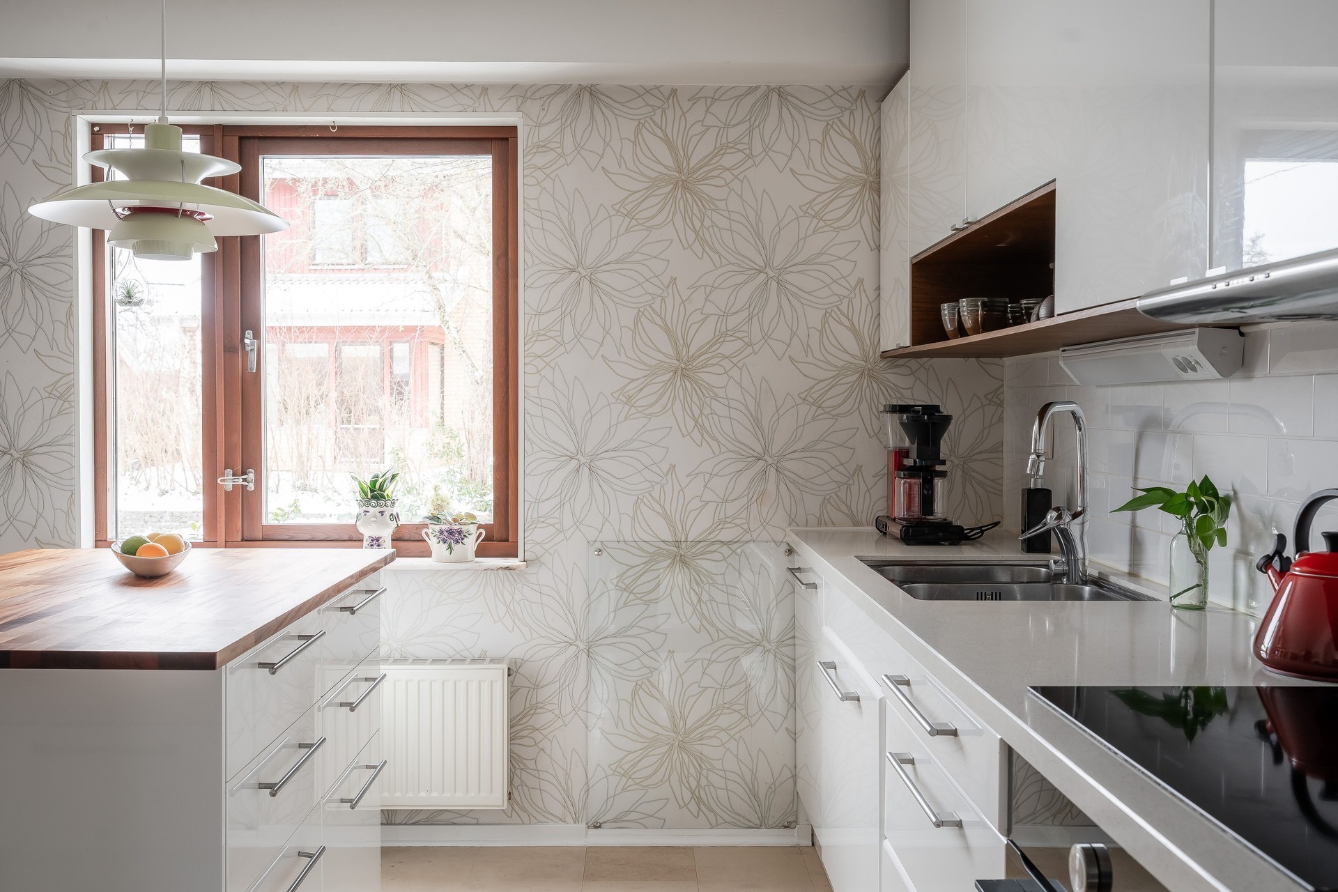 Redan i hallen möts du av en välkomnande känsla med ljusa ytskikt och praktiska förvaringsmöjligheter. Entréplanet bjuder vidare på ett socialt och rymligt kök med generösa arbetsytor och en flexibel köksö på hjul. Köket har en tidlös utformning med vita luckor och är fullt utrustat för den matlagningsintresserade. I direkt anslutning finns den praktiska tvättstugan med egen utgång till trädgården. Trädgården är lummig och omsorgsfullt anlagd med bland annat japansk lönn, klätterhortensia, honungsros, vildvin och pioner samt flera sittgrupper och ytor för både avkoppling och lek.