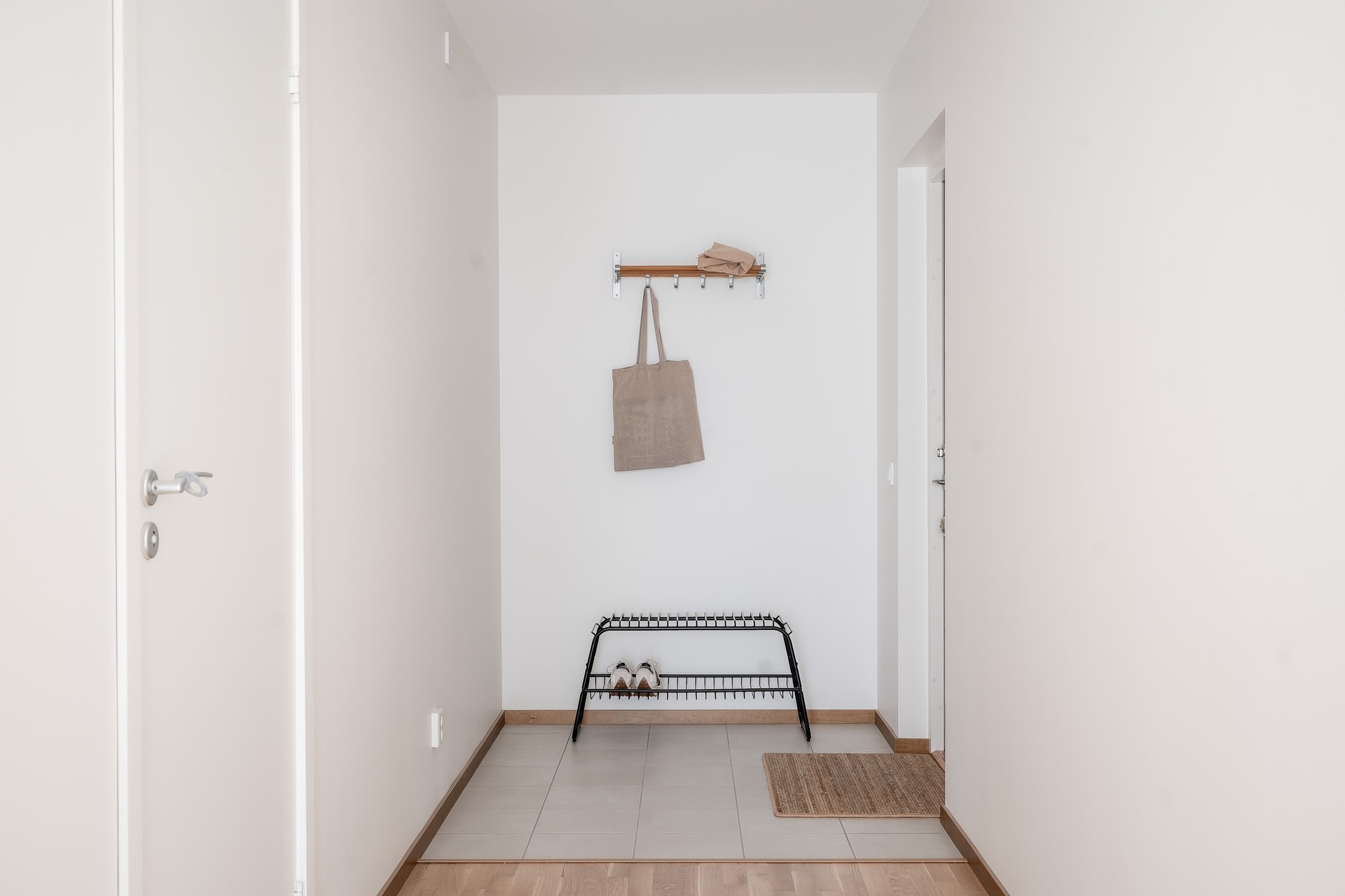 Golv; Klinker innanför entrédörr Centro Lobby 300x300. Ekparkett, 3-stav, mattlackerad.