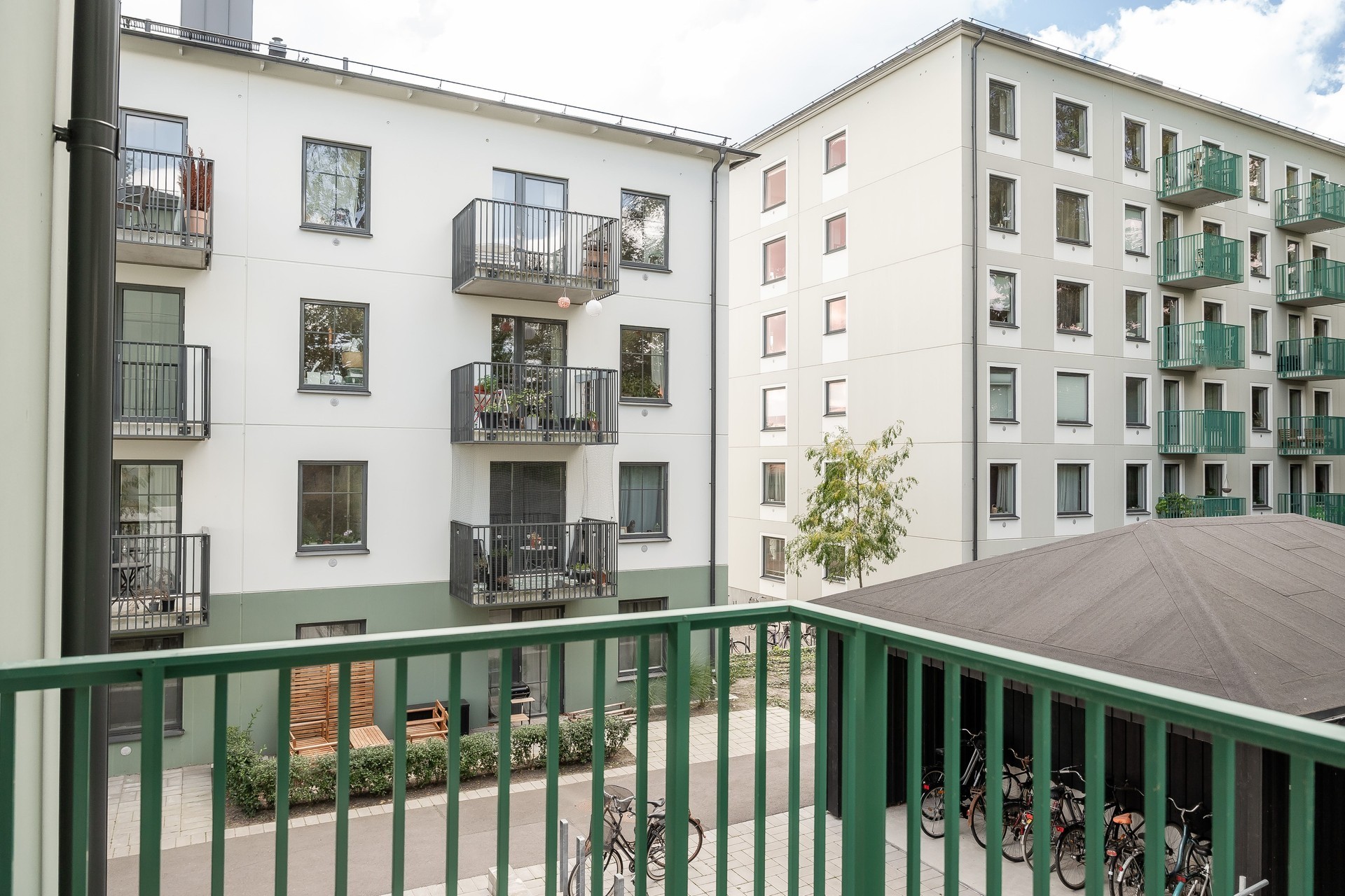 Lägenhetsförråd finns inne i lägenheten alternativt som eget förråd i gemensamt utrymme på bottenvåningen.