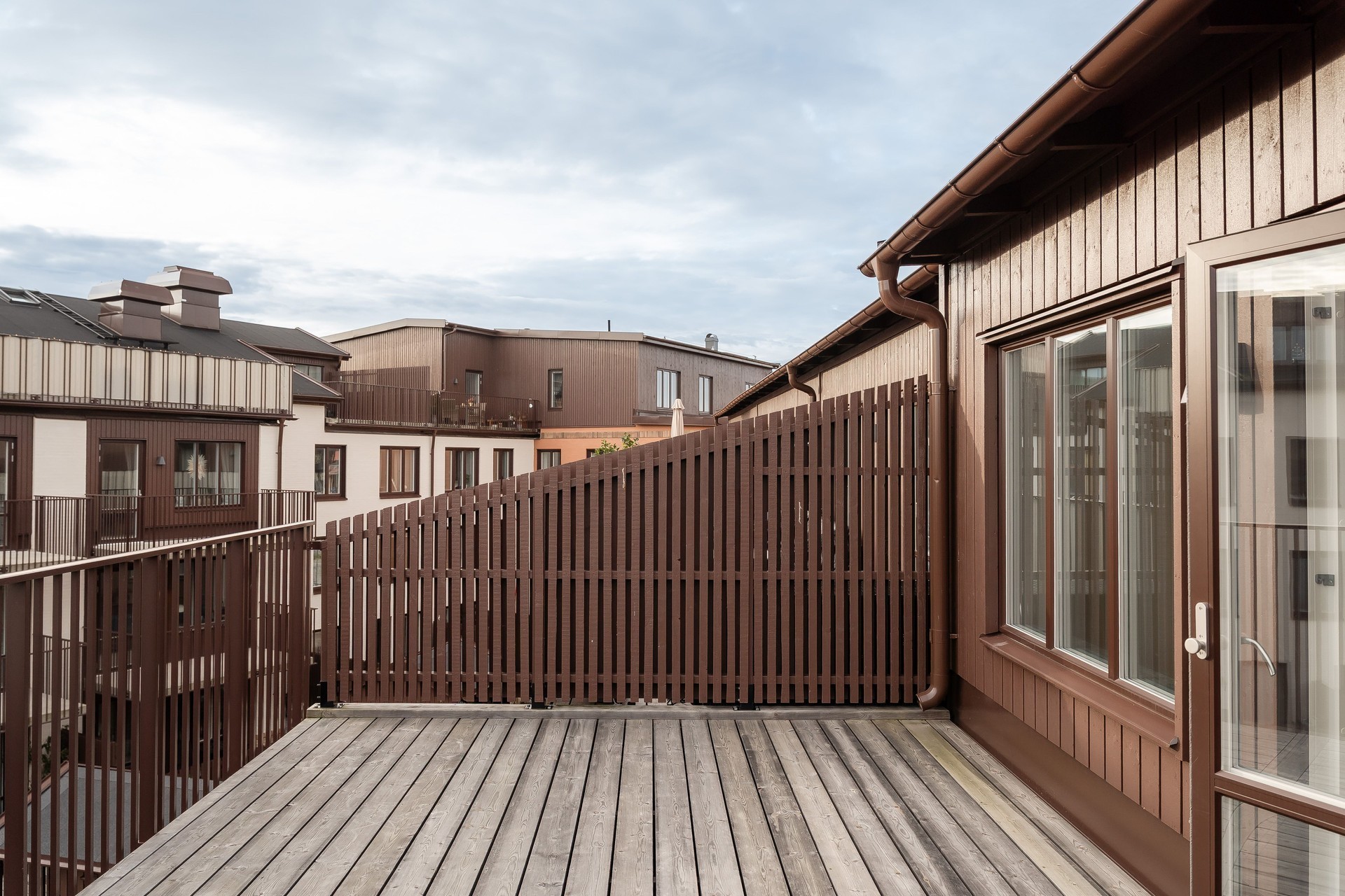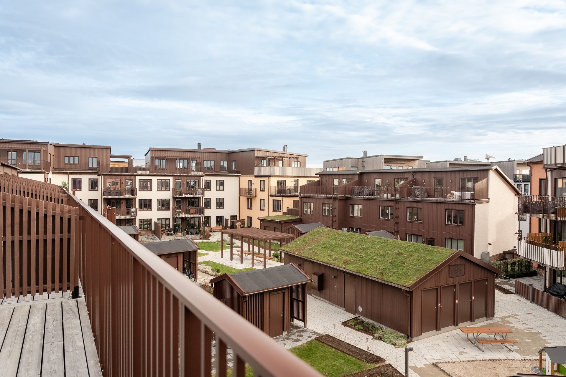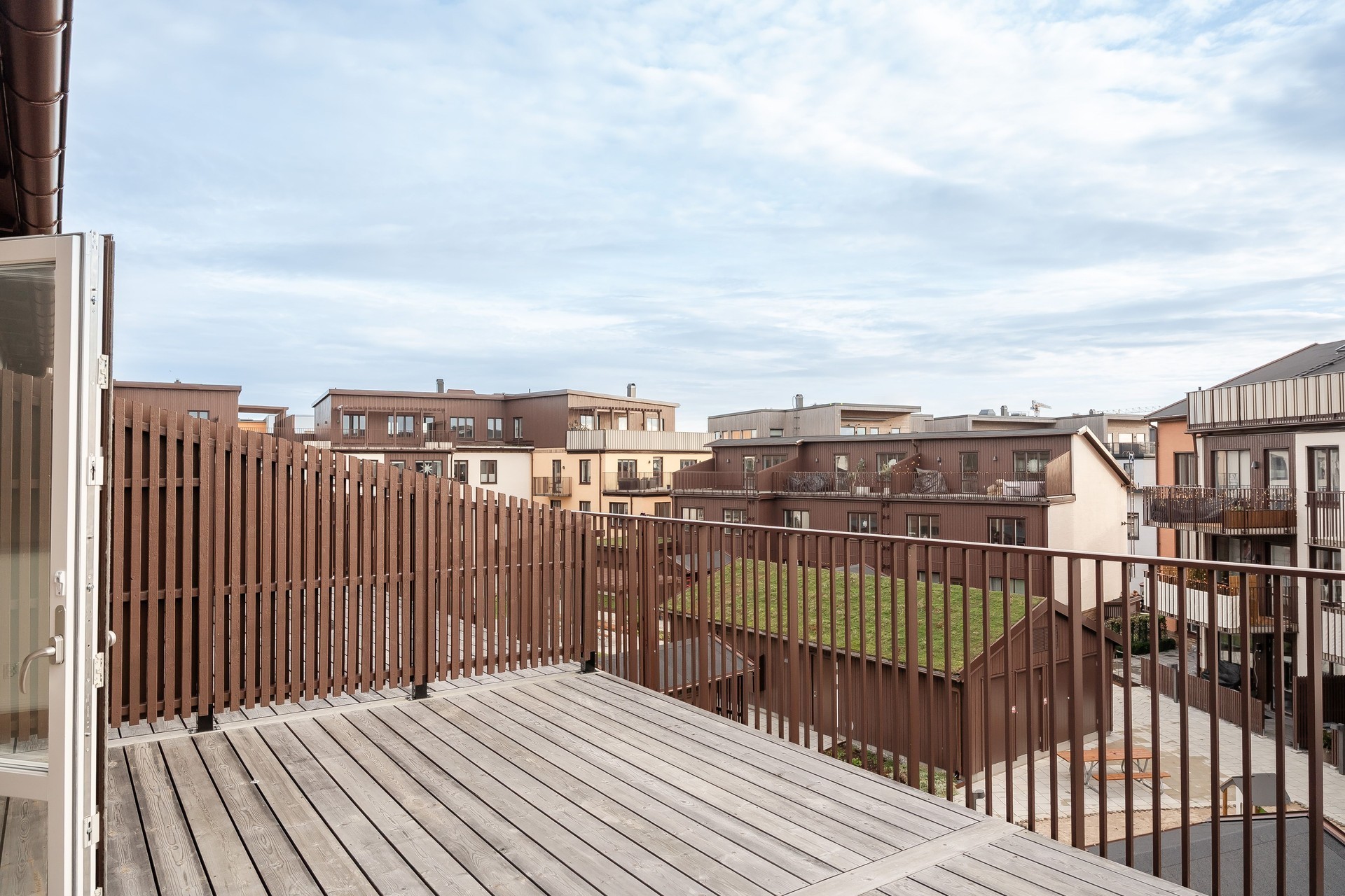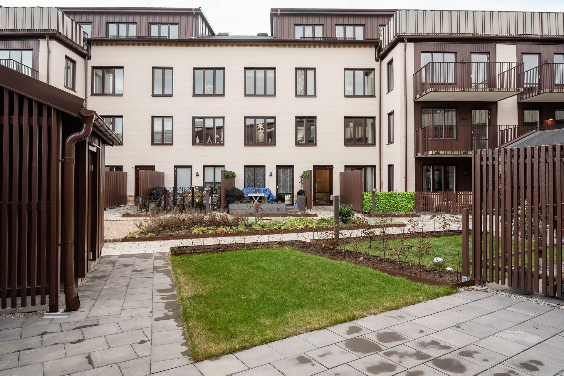 Bostaden erbjuder tre väl tilltagna sovrum med möjlighet att skapa ytterligare två, vilket gör det perfekt både för den större familjen och för dig som vill ha generösa ytor för avkoppling och umgänge. På entréplanet möts du av ett ljust och luftigt kombinerat kök och vardagsrum med en öppen och social planlösning, lätt att möblera och trivas i. Härifrån når du direkt den privata uteplatsen, som rymmer både gräsmatta, förråd och en praktisk cykelplats. På detta plan finns även ett badrum med tvättmaskin och torktumlare. Högst upp i huset finns ett extra allrum och kan bli perfekt som lounge, lekrum eller hemmakontor. Härifrån kliver du ut på den härliga takterrassen, en plats för både avkoppling och sociala stunder. I soligt söderläge och med utsikt över den gröna innergården är detta en idealisk plats för lata dagar och ljumma kvällar med vänner och familj.