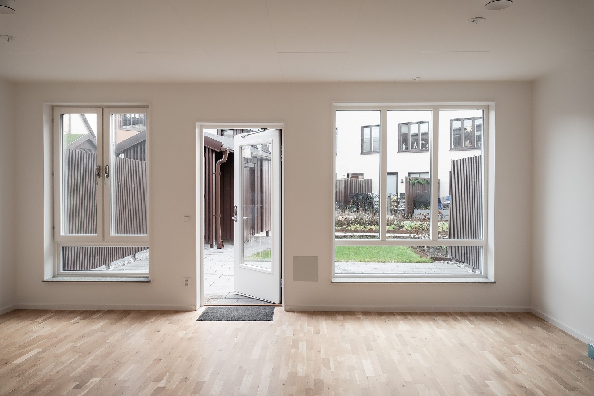 Gathuset är nyproducerat och har endast använts som visningsbostad av JM,